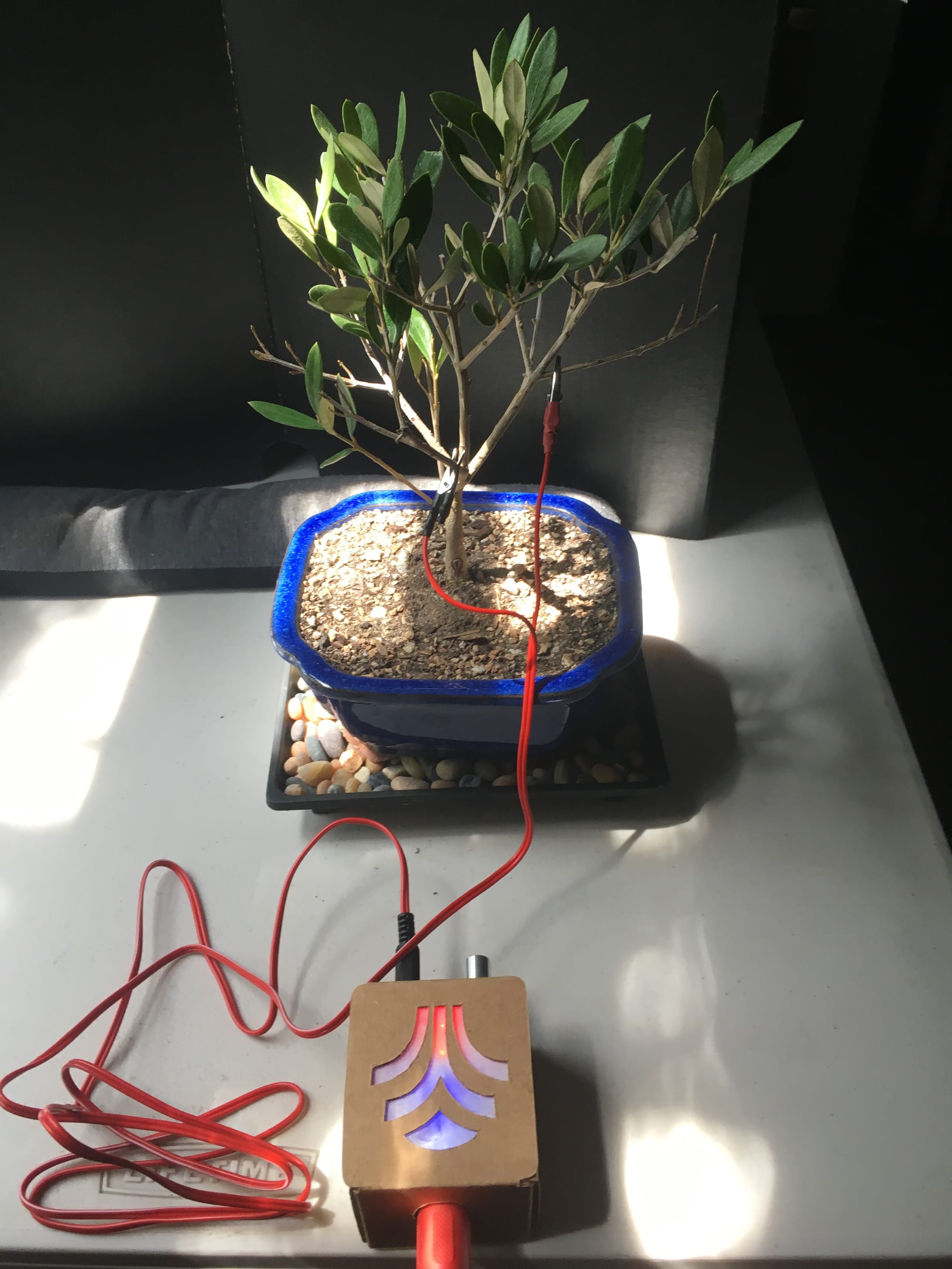 When I gently clip the wires of PlantWave onto a plant, it’s like placing an instrument in a musician’s hands, a piece of gear that’s custom-designed for the land where they live and the stories they have to tell. Captured by delicate sensors, electrical signals produced by the olive tree were transformed into sounds created from samples of a Palestinian flute called the shibbabeh, an instrument historically made from reed, another native species from that part of the world. The result is a hybrid collaboration that connects plant, computer, and human.